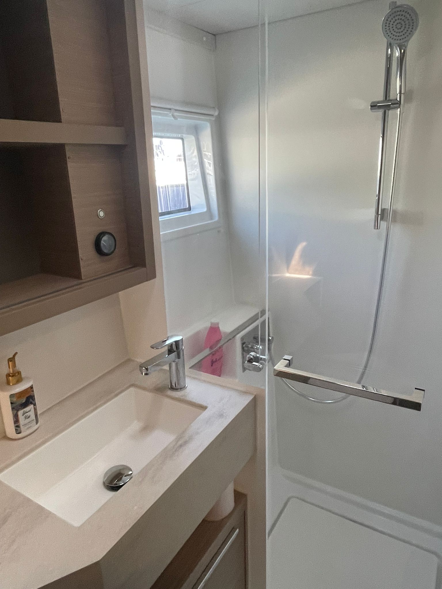 Комфорт / Удовольствие: Кондиционер ✓ Электрические туалеты ✓ Вентиляторы в каютах ✓ Вентиляторы в салоне ✓ Флайбридж ✓ Генератор ✓ Солнечные панели ✓ USB-порты для зарядки ✓ Опреснитель воды ✓